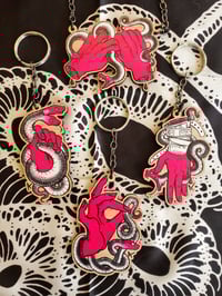 2 1/2'' cherry MDF charms on a nickel free iron chains.